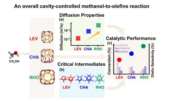 Methanol to olefins reaction over cavity-type zeolite: Cavity controls the critical intermediates and product selectivity