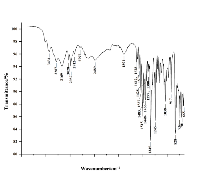 取适量黄色粉末,使用衰减全反射附件(Attenuated Total Reflectance,ATR)直接用粉末进行IR分析.