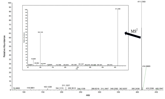 ESI-HRMS spectrum (MS1 and MS2) of phenylethyl etonitazene