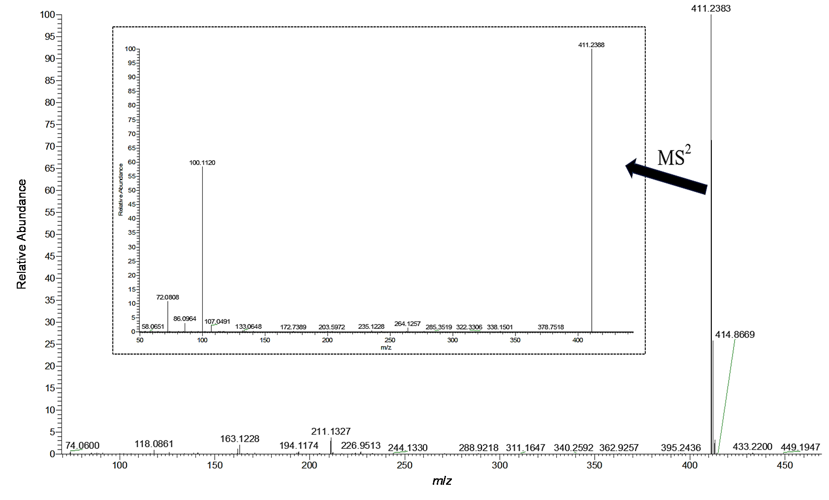 | 图5 苯乙基依托尼秦的ESI-HRMS谱图(MS1和MS2) |