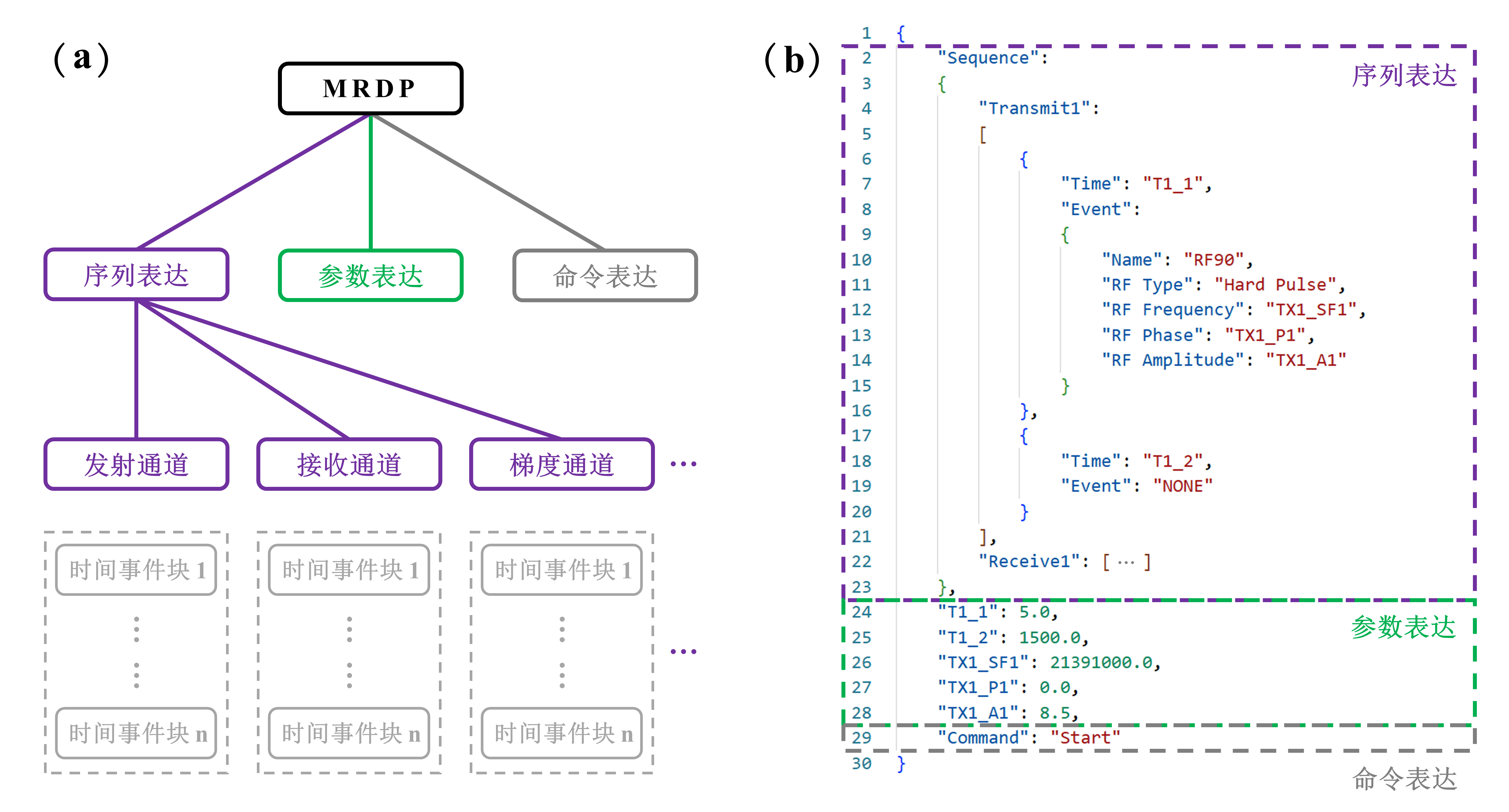 | Fig. 3 Structure and example diagram of magnetic resonance data protocol. (a) Structural block diagram; (b) Data example diagram |
