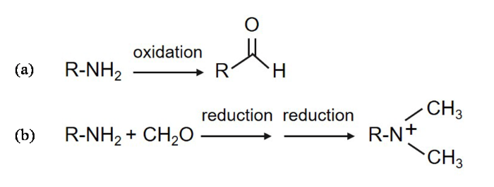 Schematic diagram of protein side chain carbonylation and reductive methylation. (a) Protein side chain carbonylation; (b) Protein side chain reductive methylation