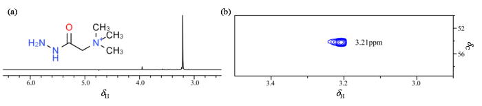 GRT的分子结构图和NMR表征图. (a) GRT分子结构图和1H NMR谱图;(b) GRT试剂的1H-13C HSQC谱图