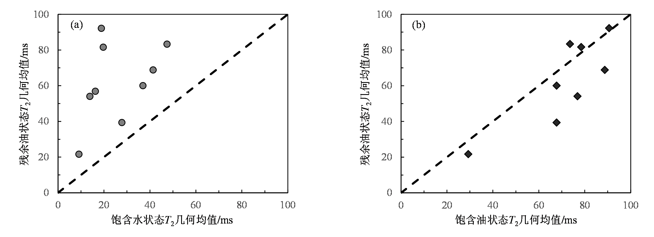 | 图3 三种不同饱和状态的核磁共振T2几何均值对比交会图 |